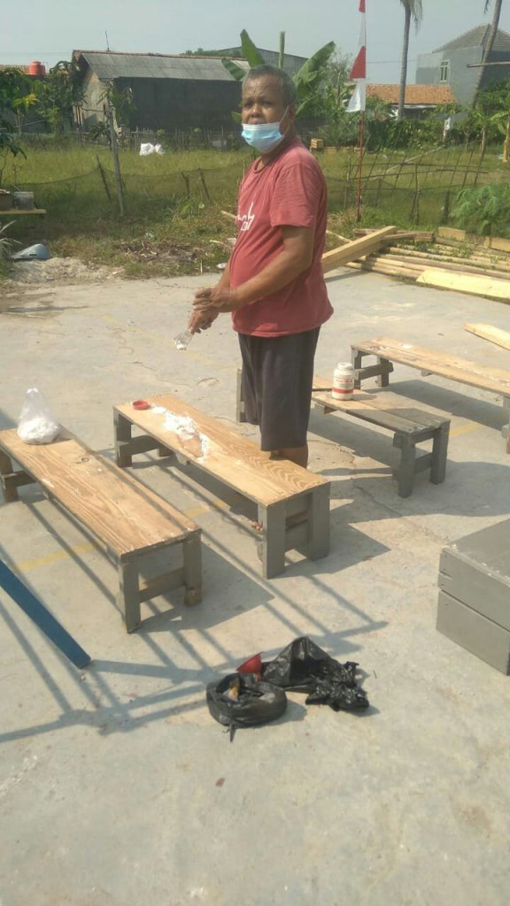 Mengingat kondisi sekrang penyebaran Virus Covid 19 sudah sangat mengahawatirkan Warga PERUMAHAN PILAR GADING MAS DESA SUKARUKUN KEC. SUKATANI tepatnya di Blok E 1, E2 Gang SUNAN AMPEL berinisiatif membuat kursi sederhana dari kayu tentunya untuk menambah fasilitas gang dan kegunaan lainnya seperti untuk berjemur santai dibawah trik sinar matahari di pagi hari.